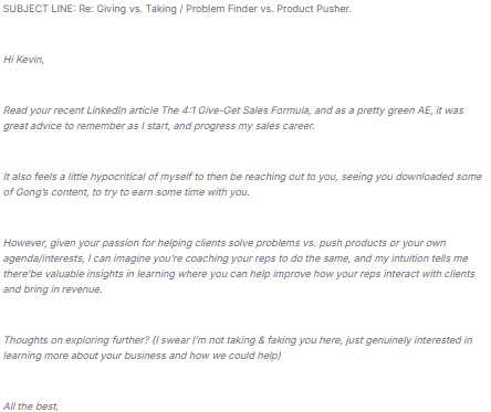 It also feels a little hypocritical of myself to then be reaching out to you, seeing you downloaded some of Gong’s content, to try to earn some time with you.