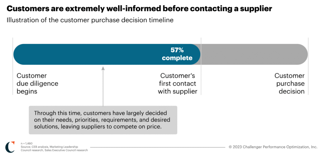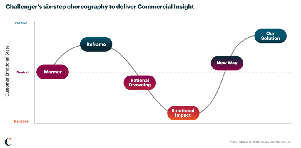 Como os clientes modernos, em média, já percorreram mais da metade do processo de compra antes de falar com um vendedor, essa metodologia está praticamente obsoleta. Os leads já conhecem o playbook de venda! Em vez disso, os vendedores Challengers oferecem a esses clientes já informados uma nova maneira de encarar seus problemas, geralmente focando nos impactos negativos de manter o “status quo”, para guiá-los à melhor solução.